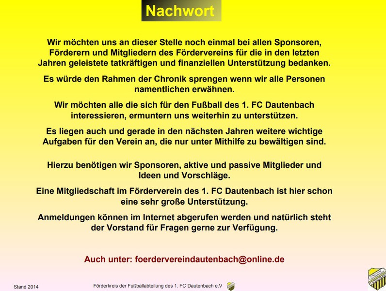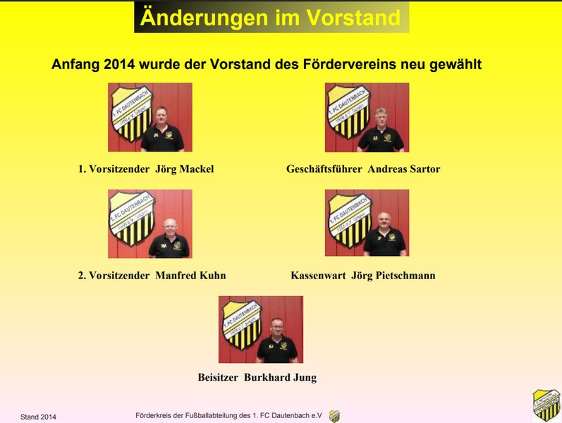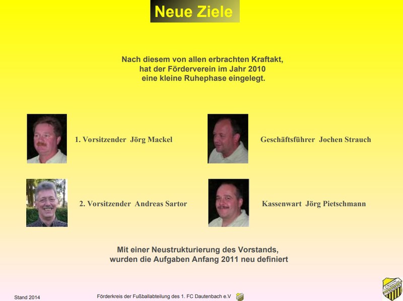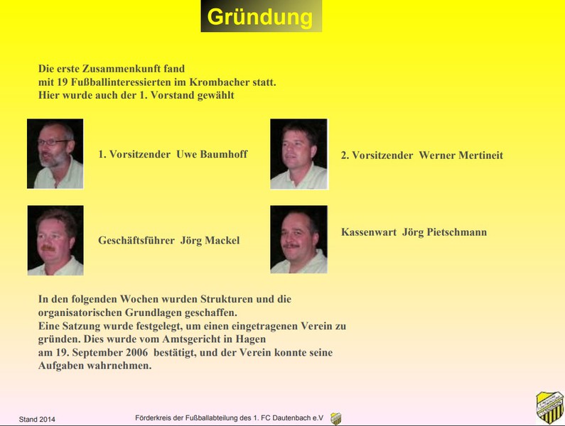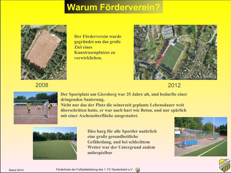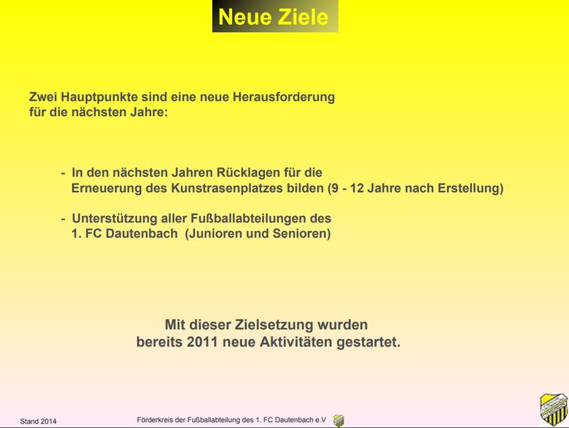 Am 19. Semptember 2006 wurde der Förderverein des 1. FC Dautenbach e.V. mit einem großen Ziel vor Augen gegründet.