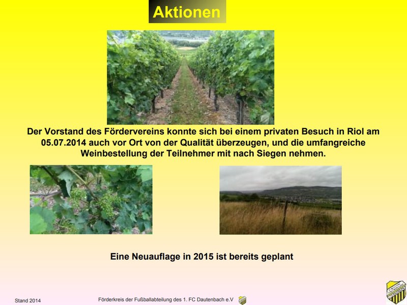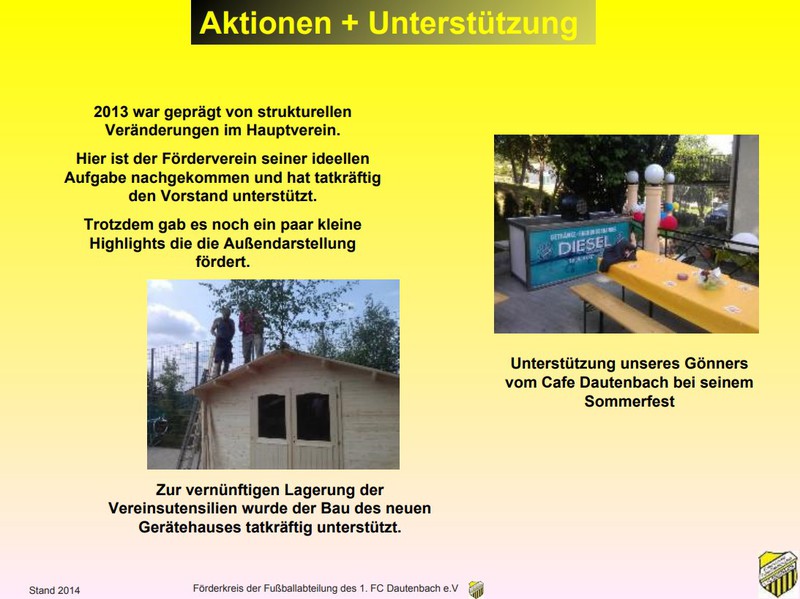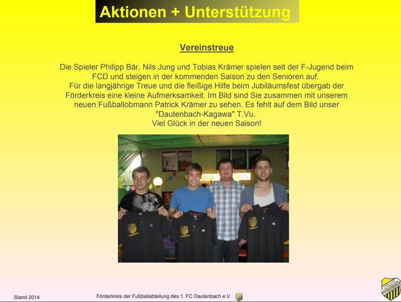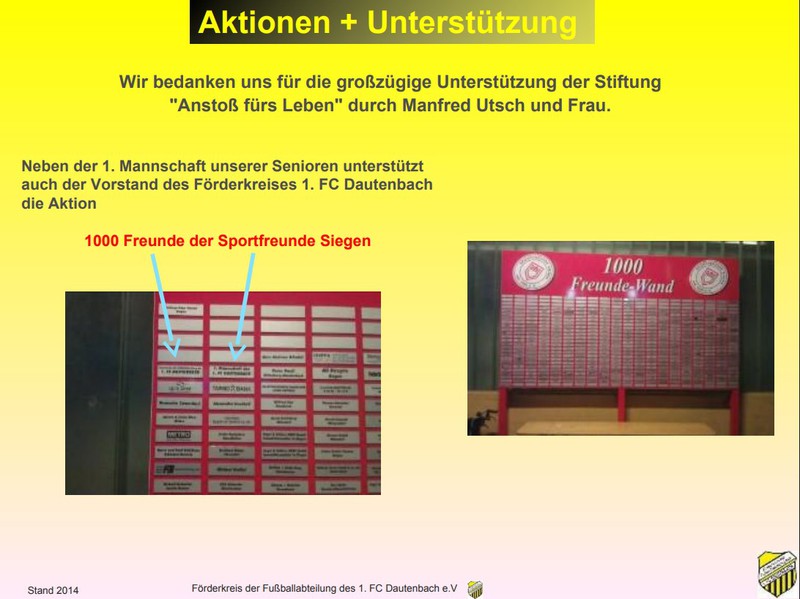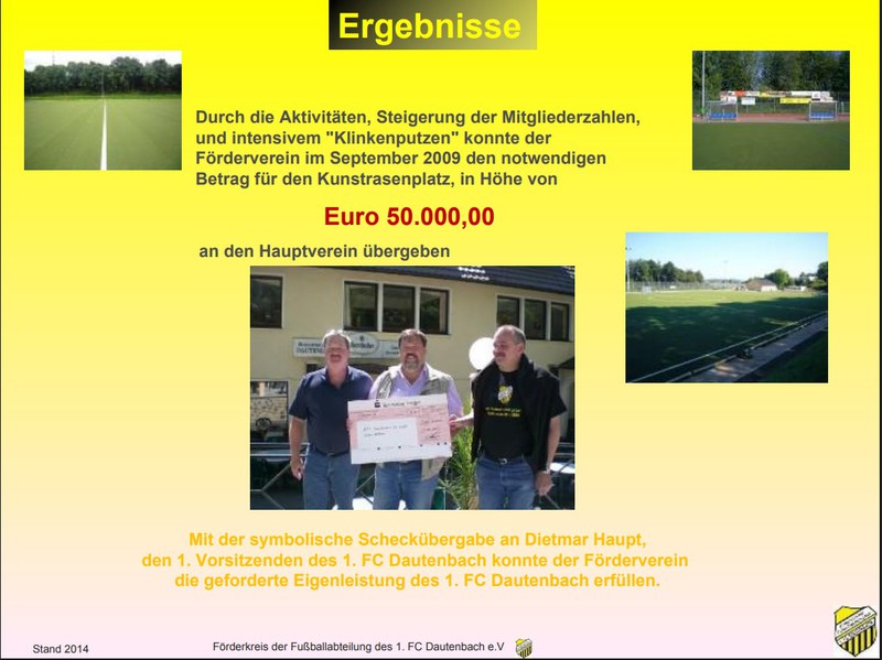 Die finanzielle Unterstützung, um diese Summe zu stemmen, erhielten der Verein dabei vom uns (dem Förderkreis der Fußballabteilung des 1. FC Dautenbach). Wir