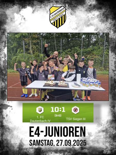 Am Wochenende hatten unsere E4-Junioren gleich zwei Gründe zum Feiern: ein tolles Ligaspiel-Ergebnis: 10:1 gegen TSV Siegen III und nach dem Spiel Geburtstag des Trainers Lico.
