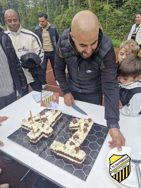 Die Eltern haben den Trainer mit einer wunderschönen Torte überrascht.